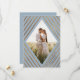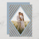 Dessa vackra inbjudningar från bröllop spara datum har snyggt faux guld foil rand, som skapar en geometrisk diamantformad ram runt fotot. Bakgrunden till färg är dammblått. En textmall finns på baksidan för ytterligare anpassning - anpassa den med stad och stat!