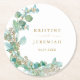 Modern Guld Script Eucalyptus Watercolor Bröllop Underlägg Papper Rund