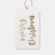En enkel, modern julklapp märkre med guld god jul-penselbokstäver på framsidan och till och från baksidan för gåva ge. Lägg till lite luft i dina helgdag och bakomliggande varor. Bakgrunden till färg är helt och hållet anpassade för att enkelt matcha ditt färg-system.
