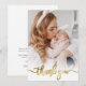 Elegant Modern Guld Calligraphy Script Photo Newborn Flicka - tackkort. Har en vacker "tack"-text i ett handskrivet calligraphy swash svan font script in faux guld foil. På motsatt sida finns ett personligt meddelande. Underbar för pojke eller flicka. Enkel att anpassa med ditt baby-foto och din information.