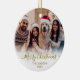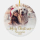 Modern Cute Minimalist Guld Script 2 Photo God jul-skript, Helgdag Ornament Card. Den här snygga, enkla, minimalistiska, visuella, två fotokortsmallar Julhälsningar Namn, År och hälsning som är skriven i God jul i en handskriven text som snabbt byts ut mot svan på kalligrafiskript i guld på vita övertoningar. Söt hälsningskort för din familj och dina vänner under julens Julhelg.
