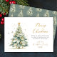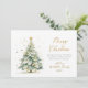Elegant Modern Guld Calligraphy Script Watercolor Julgran Non Photo jul-Helgdagskort. Den här julkortsmallen innehåller en vattenfärg julgran med dekoration guld och konetti och en text "God jul" hälsning som är skriven i en söt-handskriven typsnittstyp i guld och vitt. På motsatt sida mousserande guld julgran mönster på grund av dammig grönt. Det här julkortet för festlig Anpassningsbar Personlig är ett underbart sätt att påminna nära och kära om att du tänker på dem den här vinterJulhelgen.