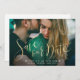 Modern sparar datumskriptet i faux guld-folie färg, med ett pars foto, enkla och elegant. Underbara fotot sparar datumkorten för vintage bröllop, formella bröllop och andra evenemang. Välj "Klicka för att anpassa ytterligare" i avsnittet "Anpassa den här mallen" för att justera fotots position och storlek.