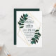 Modern Guld Teal Greenery Terrarium Bröllop Inbjudningar