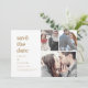 Denna moderna guld-typografi 3-fotokollage sparar datumkortet är perfekt för ett enkelt bröllop. Guld och vit minimalistisk design har ett retro-ändå-contemporary med ett unikt rustiskt bohemiskt utseende. Perfekt för alla säsonger. Behållan är minimal, vilket är fallet, eller lägg till egna bilder och teckningar.