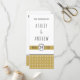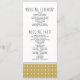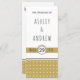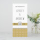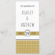 Modern men med en vintage känner sig för det guld typografiska bröllopsprogrammet som visar ett vitt geometriskt mönster på guld och en banderoll med bröllop-datum.