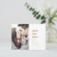 Med det här moderna fotot av typografi i guld kan du spara det datum då vykortet är perfekt för ett enkelt bröllop. Guld och vit minimalistisk design har ett retro-ändå-contemporary med ett unikt rustiskt bohemiskt utseende. Perfekt för alla säsonger. Behållan är minimal, vilket är fallet, eller lägg till egna bilder och teckningar. Anpassa med din favoritförlovning bild.