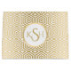 Monogrammad elegant modern guld på vit polygongeometrisk sömlös mönster. Anpassade monogram med guld och vita accenter.