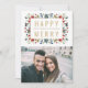 Modern Guld Watercolor Berries Jul Foto Julkort