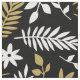 Modern Guld White Botanical Lövs Blommigt på Black Tyg
