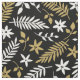 Denna moderna julväv har en ren botanisk mönster av vita och guld löv och blommor på svart bakgrund. Använda för helgdag-, inrednings- eller hantverksprojekt. Från våra hjärtan till era, Glad helg!