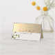 Enkel, modern kalligrafi skrift, elegant, stilren, minimal guld bröllopsplatskort med namn och bordnummer.
