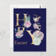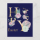 En härlig, modern vattenfärgsillustration i blommigt med abstrakt inslag som visar brev LYCKLIG i faux guld-folie och ord Påsk i klassisk typografi i mörkens blå bakgrund. Det finns plats på baksidan av vykortet för ditt eget personliga meddelande från Påsk helgdag till dina vänner och familj. Du kan ändra bakgrunden till färg om du inte är fläkt i marinblå, och du kan också ändra teckensnittet och teckensnittet färg i ditt personliga meddelande.