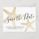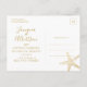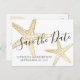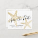 Minimal fjärna strandbröllop spara datum är så strand chic i svart, guld och vitt.