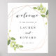 Modern guldgrönska bröllopsväxkomstskylt poster
