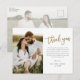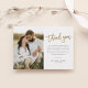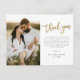Detta moderna fototack-kort har guldmanus tack, personligt meddelande och ett vertikalt foto på framsidan. Baksidan innehåller ett andra foto som är ett horisontellt foto utan kanter. Klicka på redigera för att anpassa denna design.