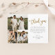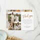Detta moderna fotokollage tackkort har guldmanus tack, personligt meddelande och 3 foton på framsidan. Baksidan innehåller ett 4:e foto som är ett horisontellt foto som sträcker sig ut till kanterna. Klicka på redigera för att anpassa denna design.