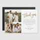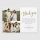Detta moderna tack-kort för fotokollage har tack med guldmanus, personligt meddelande och 3 foton på framsidan. Baksidan är magnetisk. Klicka på redigera för att anpassa denna design.