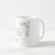 Elegant vattenfärg eukalyptus grönska blad blomster monogram namn mugg med en guldmonogram initial. Designad av Thisisnotme©
