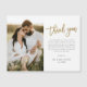 Detta moderna foto tack-kort har guldskrift tack, personligt meddelande och ett vertikalt foto på framsidan. Baksidan är magnetisk. Klicka på redigera för att anpassa denna design.