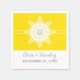 Modern gult för snöflingor, papper napkin för vinterbröllop, med en vit snöflake och en utskriven bild av en juvel på gultens bakgrund. Lite inslag från vectorportal.com. Denna utformning av elegant bröllop-mallen är helt och hållet anpassade som kan vara personlig och som ingår i en perfekt som fastställts för bröllop under en vinterjul i bröllop, möhippa, mottagning, förlovning eller årsdag i party.