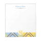 Modern Gult Blue Tartan Monogram Script Namn Anteckningsblock Girly, modernt och trendig anpassade innehåller "personlig namn sedlarna" överst och anteckningsblock-blått plaid tartan vid gult. Anpassa det här vackra anteckningsblocket som en fantastisk gåva till din lärare, vän eller någon medlem av din familj genom att lägga till ditt namn eller text/ändra typsnitt, färg, storlek och position.