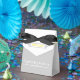 Modern gult, grått, vit vintage bröllop-favoritbox med modern design med vintage inslag, t.ex. grått ram med namn och datum för din händelse på grått och vit bakgrund. Det finns en gult rand längs lådan. Den här contemporaryn och trendiget ännu med inslag-design med ett skriptteckensnitt är fullt anpassade och ingår i en bröllop-uppsättning.