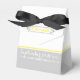 Modern gult, grått, vit vintage bröllop-favoritbox med modern design med vintage inslag, t.ex. grått ram med namn och datum för din händelse på grått och vit bakgrund. Det finns en gult rand längs lådan. Den här contemporaryn och trendiget ännu med inslag-design med ett skriptteckensnitt är fullt anpassade och ingår i en bröllop-uppsättning.