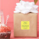Den här etiketten har ett modernt stil med grönt på gultens bakgrund.