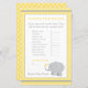 Babyduschen "Gissa det Prisa" spelkortet har en ynklig liten nyfödd elefantkalv från baby med hjärtformade stänk och anpassningsbar. Utformningen kombinerar ett mönster av klassiskt diagonalt rand med lekfullt polka dots och omfattar ett modernt könsneutralt färg-schema med solskensfärgad gult, grått och vitt.