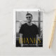 Ett enkelt tack från studenten som du har på vykortet med studentens lodrät-foto med "Tack" som visas i gult, modernt dekotecken. Anpassa framsidan av fotot. Tack för att du skrev på studenten genom att lägga till student namn, namn och studenten. vykortet återgår till visning av returadressen och ger utrymme för ditt skrivna eller handskrivna tackmeddelande.