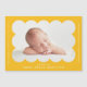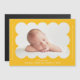 En enkel och modern förlossningsförkunnandemagnet som visar ditt baby-foto som är inkapslat i en gult som är utspridd i ram. Anpassa födelseannonsmagneten genom att lägga till din baby namn och ytterligare information i vitskrift.