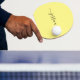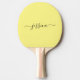 Modern pingpongpaddel med gultens bakgrund och ett svart skript. Anpassa med ditt namn.