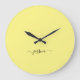 Modern klocka med en solig gult bakgrund och ett handskript med svart gips namn. Anpassa med ditt namn
