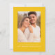 Vi presenterar vår fantastiska moderna Gult och Vågigt Ram fotobröllopsinbjudan, där boho möter retro i ett harmoniskt firande i kärlek! Med gult som dansar över den vita inbjudan, försedd med en vågigt ram som påminner om vintagens charm, anger den här visuella designen perfektens ton för din speciella dag. I personlig med parets närmare uppgifter om namn och bröllop utstrålar varje inslag ett luft av nostalgi och modern elegans. Inbjudan går tillbaka till visning av fotot på lodräts förlovning med bröllop webbplats som visas nedan. Förbered dig på din union med den här unika inbjudan och bjud in dina gäster att gå med i glädjen i din boho-retro-kärlek-historia.