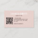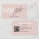 Modern hair stylist business card with a blush pink background color and a QR code. Clean, simple design with stylish fonts and a professional layout. The QR code makes it easy for clients to book appointments, visit your website, or view your portfolio. Perfect for hairstylists and beauty professionals who want an elegant and modern look.