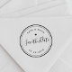 Anpassad Spara Datum-stämpel med modern elegant handskrift i en enkel cirkulär design. Denna moderna och eleganta stämpel är perfekt för bröllopsannonser, inbjudningar, DIY-gåvor och mycket mer!
