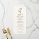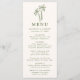 Öka din bröllopsmottagning med det här elegant-menykortet och visa handdragen grönt handflatan träd överst på en mjuk gräddbakgrund. Den här charmerande designen är perfekt för strand-, tropisk- eller destinationsbröllop och gör det möjligt för par att anpassa sig efter namn, bröllop-datum och en vackert presenterad meny. Ett smakfullt sätt att förbättra matbordet och imponera på gästerna.