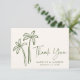 Säg tack med en mjuk, naturlig beröring med det här tropiska tackkortet bröllop. Den handritade grönten handflatan träd går mot en gräddbakgrund med "Tack" skrivet i ett flytande skript. Par kan lägga till namn och bröllop-datum längst fram och lägga till ett personlig på baksidan, skapar det idealiskt för sommar, destination eller bredvid bröllop.