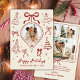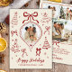 Modern Hand-Drawn Red Bows Photo Christmas Happy Julkort