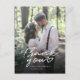 Ett bra och omtänksamt sätt att tacka dina vänner, familj och kollegor som hedrade dig med sin närvaro på din bröllopsdag med detta moderna fototackkort med handskrivna "tack" i versaler och ett hjärta.