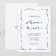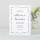 Modern Hand plockade Bright Blue Monogram Bröllop Inbjudningar