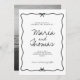 Fira kärlek med den här eleganten och den moderna, handritade bröllopsinbjudan. Med en ren och minimalistisk utformning visar den här inbjudan vackra, handgjorda illustrationer som tillför lite stollig och sofistikering. Perfekt för par som vill ha en personlig och konstnärlig känsla blandar designen sig av tidlös elegans med contemporary stil. Anpassadet med dina bröllop-uppgifter är inbjudan tryckt på högkvalitativ papper, vilket garanterar att den lämnar ett bestående intryck på dina gäster. Denna inbjudan är perfekt för intima sammankomster, rustik chic eller modernt firande och anger tonen för en minnesvärd dag.