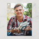 Fira en stolt milstolpe med detta moderna handskrivna manus-examensfotots examensmeddelande-postkort! Med en modern handskriven design visar detta postkort din examenskandidats namn, foto, examensår och ett anpassningsbart meddelande för att göra varje meddelande unikt. Alternativet för returadress ger en polerad touch, vilket gör det enkelt för familj och vänner att skicka sina gratulationer. Perfekt för att hedra din examenskandidats prestationer, detta meddelande kombinerar stil och anpassning, vilket skapar en tidlös souvenir för alla som tar emot det. Idealiskt för gymnasie- eller högskoleexaminerade!