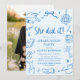 Hon klarade det! 🎓💙 Fira denna otroliga prestation med en modern och djärv stil med denna moderna, handritade "Hon klarade det"-inbjudan till blå examensfest. Med lekfulla doodle-ikoner, trendig handskriven typsnitt och självsäkra blåa accenter förenar denna design rolig personlighet med ren, modern elegans ✨ Examensmössor, böcker, slingor och skissliknande detaljer ger en lekfull touch samtidigt som layouten hålls polerad och fotoberedd. Perfekt för examina från gymnasiet, högskolan eller universitetet, denna examensfirande-design sätter tonen för en stolt firande fylld med spänning, skratt och oförglömliga milstolpsögonblick