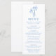 Fyll i den strandmatade mottagningen med det här moderna menykortet bröllop, som innehåller handritat blått handflatan träd högst upp på en vit bakgrund. Perfekt för kust- eller tropiskt firande innehåller denna brinnande design utrymme för parets namn, bröllop-datum och en omtänksam meny. Ett snyggt som tillägg till inställningarna för bröllop bord.