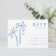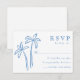 Ta kustkarm till ditt bröllop-kontor med den här snyggt OSA kort med handritat blått handflatan träd på vit bakgrund. Perfekt för strandbröllop, tropiska destinationer eller havsininspirerat bröllop ger detta svarskort utrymme för att anpassa ditt önskade svarsdatum och anpassningsbarna godtar/avvisar formuleringar. Ett genomtänkt och samordnat tillägg till din bröllopsinbjudningssvit, den här designen ger dig lite elegans till din speciella dag.