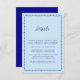 Hjälp dina gäster att känna sig perfekt förberedda för firande med det moderna Bröllop-kortet för Snäcka i blått Medelhavet. Med det här inmatningskortet får du perfekt för inkvarteringar, reseinformation, klänningskoder, helg-aktiviteter eller speciella meddelanden - samtidigt som du behåller samma mjuka, kustelegans som definierar bröllop estetik. Det här kortet är förberett med subtila säsongsillustrationer och tvättat i soothing blue nyes och balanserar praktiskt med stil. Det är idealiskt för destinationsbröllop där gästerna behöver lite vägledning från extra för att kunna njuta av varje ögonblick. Anpassa enkelt och matcha det sömlöst till din fullständiga bröllop-svit för en artig och tankfull upplevelse.