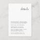 Ge dina gäster all nödvändig information i stil med detta moderna handdragna detaljkort för bröllop. Kortet är designat för att komplettera din bröllop-svit och har handgjorda illustrationer av eleganten och en minimalistisk layout. Det skapar både praktisk och visuellt bedövning. Perfekt för att dela platsens information, rum, anvisningar eller speciella förfrågningar. Det här detaljkortet ser till att dina gäster har allt de behöver för din stora dag. Helt anpassade, det blandar contemporaryns sofistikering med en personlig beröring, perfekt för moderna och konstnärliga bröllop teman.