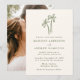 Ange tonen för ditt mål- eller strandbröllop med den här eleganten kräm och grönt handflatan bröllopsinbjudan till träd. Med en handritad illustration av grönt handflatan träd överst på en varm gräddbakgrund tillför den här designen en mjuk, tropisk beröring till din speciella dag. Par kan anpassa fronten med namn och bröllop. Baksidan av inbjudan innehåller ett foto av förlovningen för lodrät som är utfallt i fullt och skapar en personlig presentation och en snyggt. Perfekt för tropiskt bröllop, kustceremonier eller moderna destinationsbröllop.